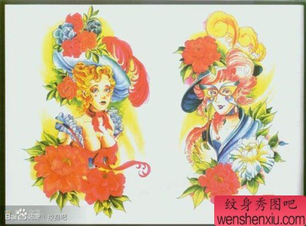 能面万媚纹身手稿_52张日式能剧面具纹身手稿图案素材欣赏