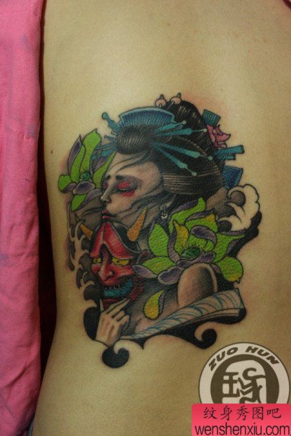 腰部漂亮的艺妓美女纹身图案