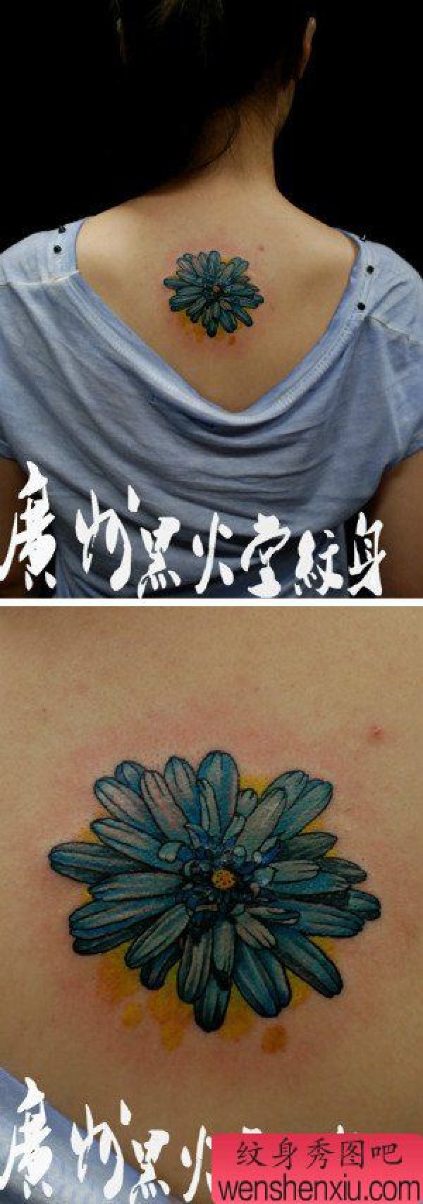 女生后背时尚唯美的小菊花纹身图案