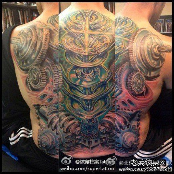 超酷经典的背部满背机械纹身图案