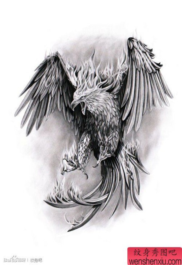 超酷经典的黑白老鹰纹身手稿