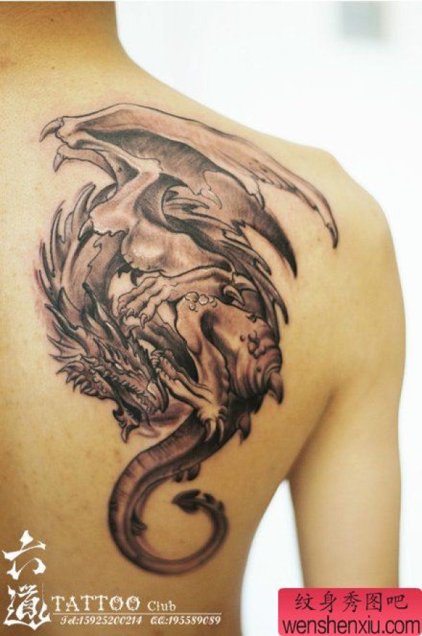 龙纹身手稿_一组老传统黑灰龙手稿纹身图案