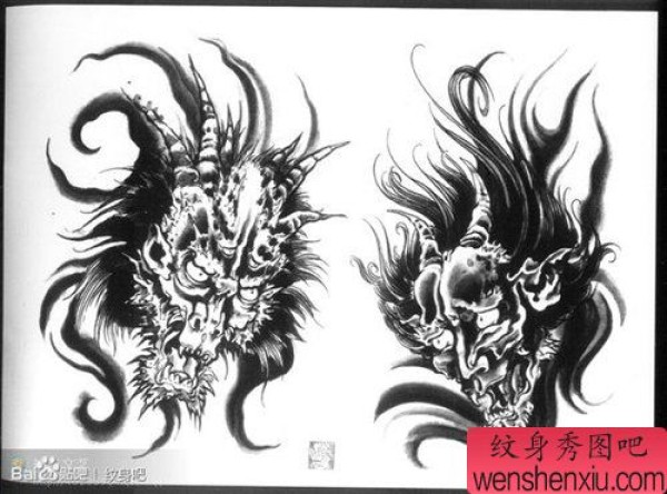 龙纹身手稿_一组老传统黑灰龙手稿纹身图案