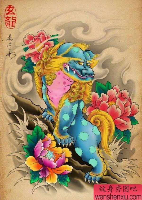 一张漂亮很帅的唐狮子纹身图案