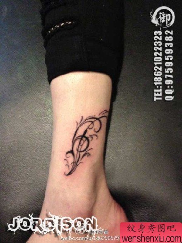 女生小腿时尚经典的图腾藤蔓纹身图案