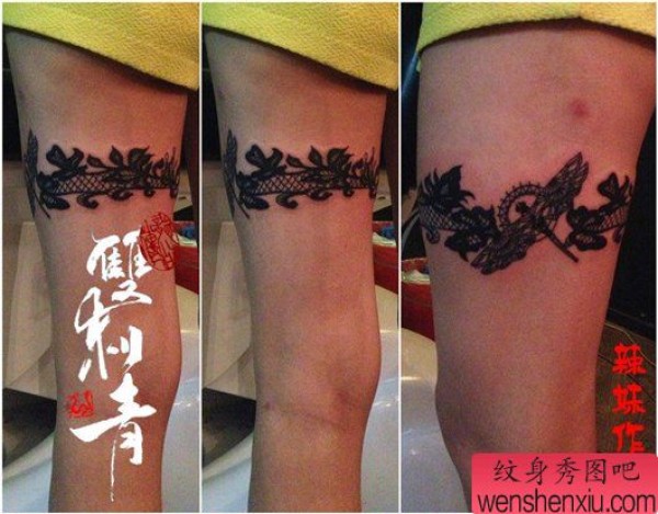 美女腿部时尚精美的蕾丝纹身图案