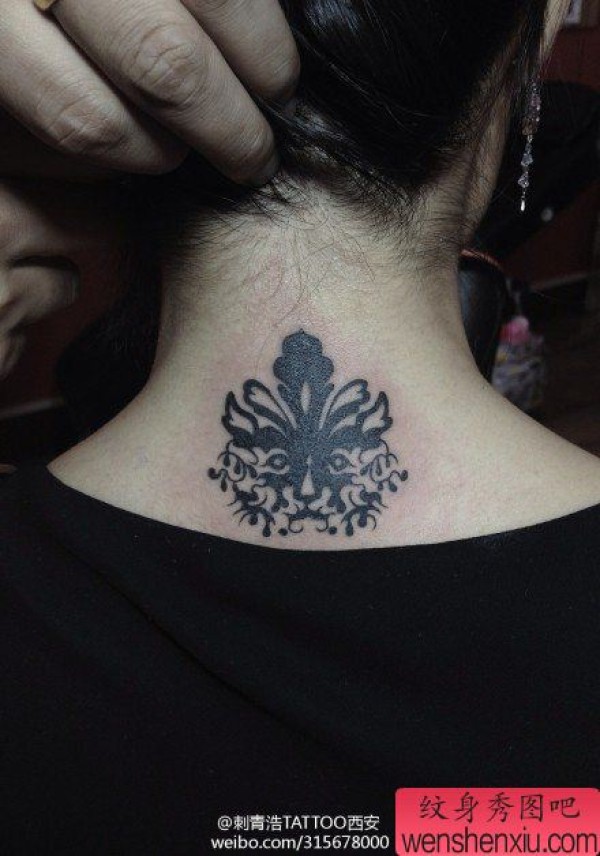 女生后脖子漂亮时尚的图腾猫咪纹身图案