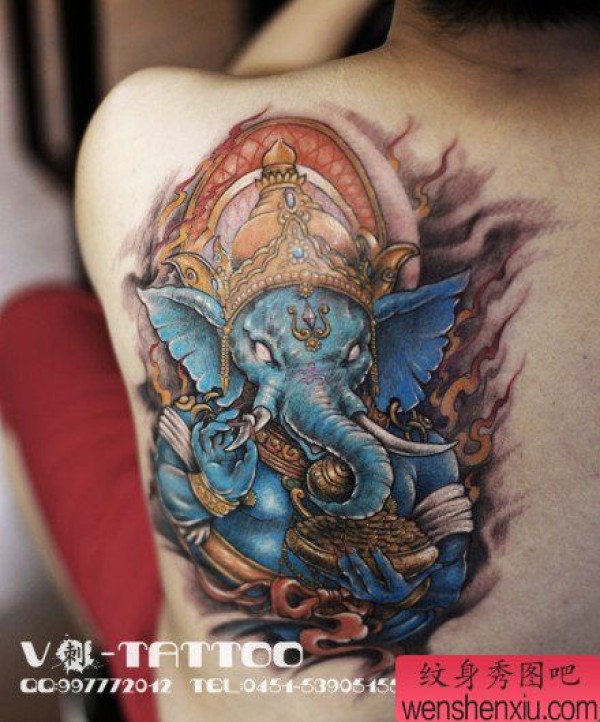 肩背很酷经典的象财神纹身图案