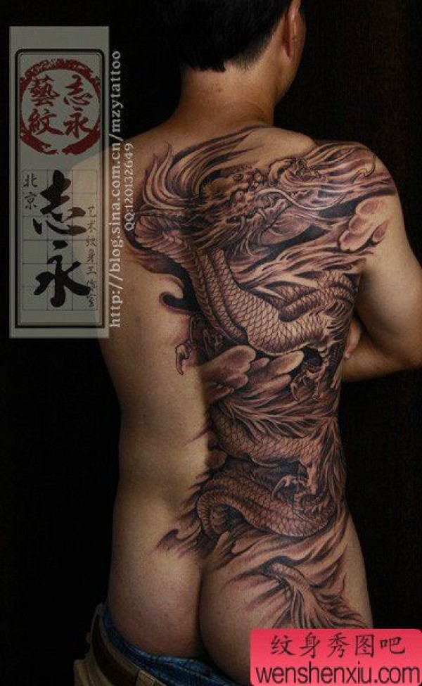 来自北京纹身图吧一张漂亮的半背龙纹身图案作品欣赏