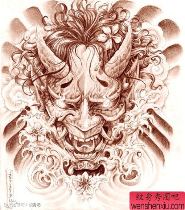 能面万媚纹身手稿_52张日式能剧面具纹身手稿图案素材欣赏