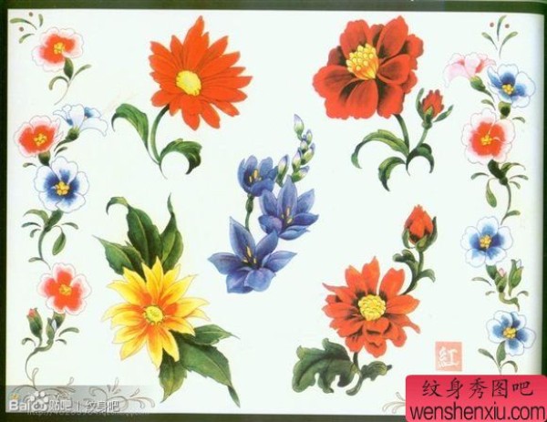 一套小巧时尚的花卉纹身手稿