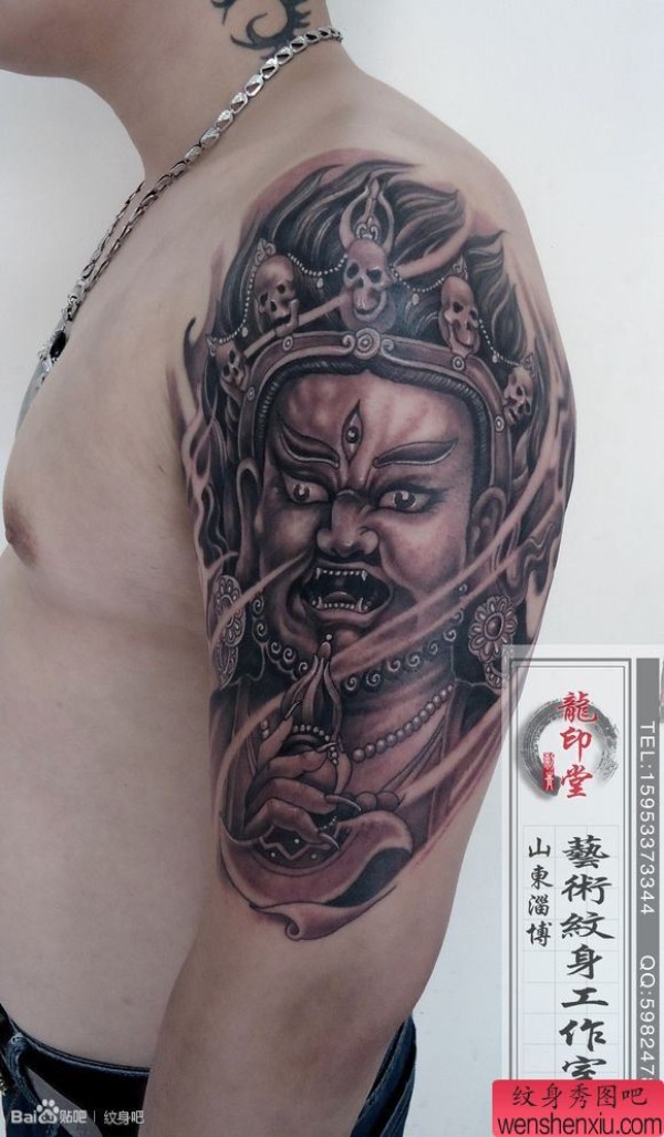 手臂一张经典很酷的大黑天菩萨纹身图案