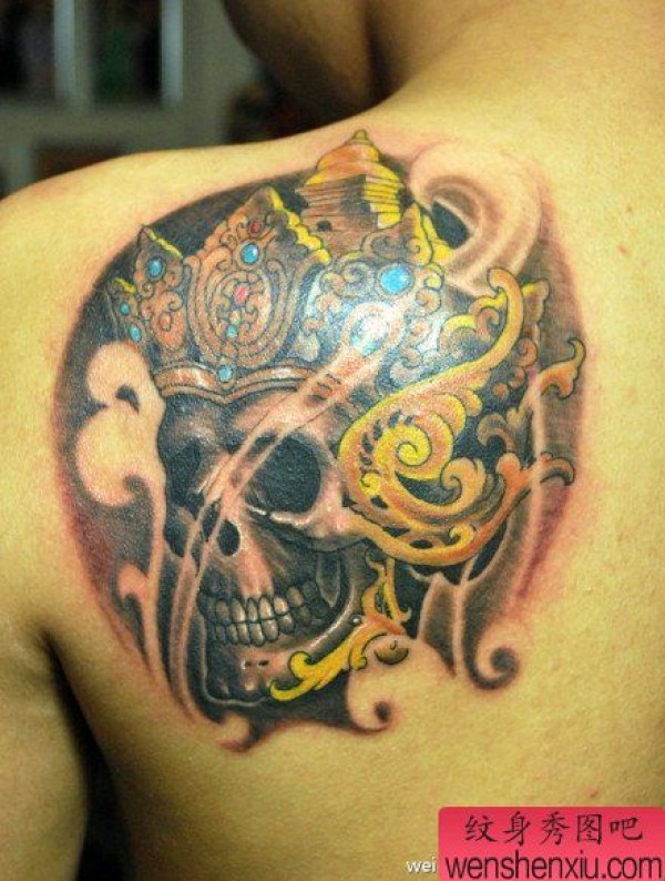 男生后肩背时尚经典的嘎巴拉纹身图案