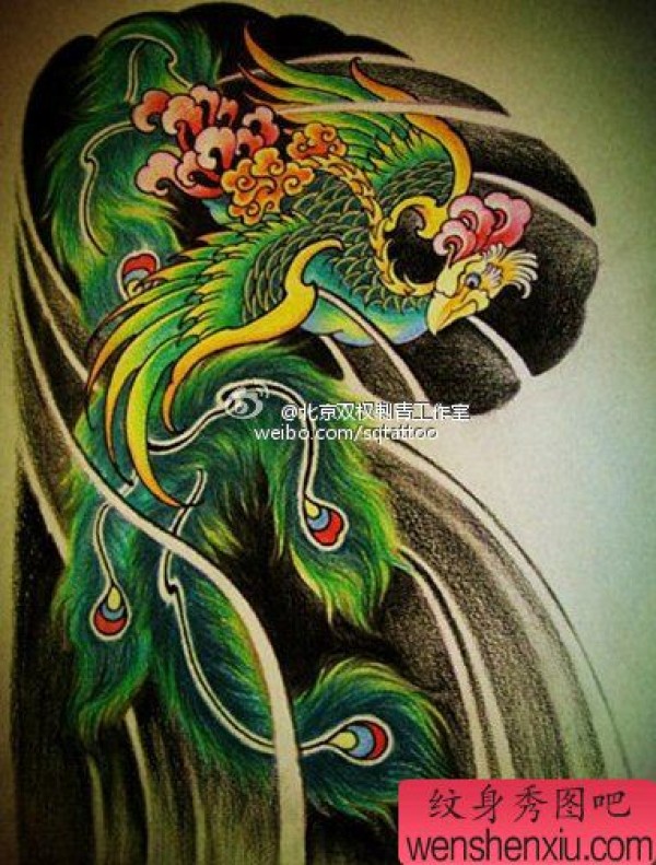 一张时尚经典的传统半胛凤凰纹身图案