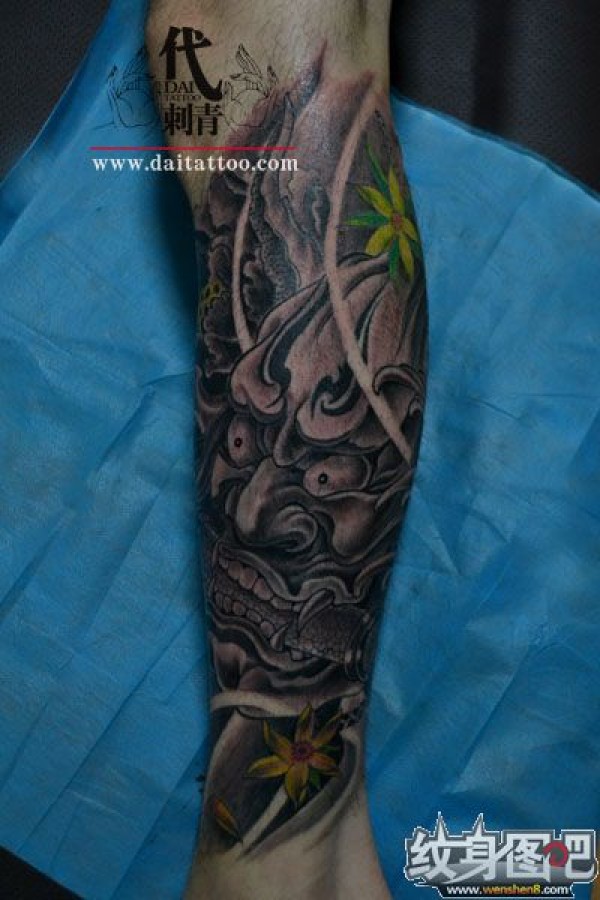 花腿纹身--一组大黑腿纹身图案作品欣赏