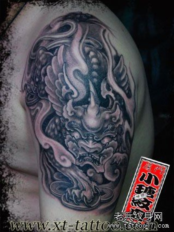 来自厦门纹身图吧一块手臂传统貔貅纹身图案作品展示