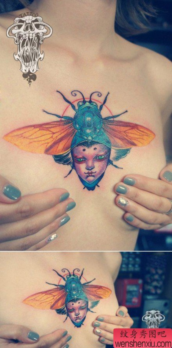 女生前胸时尚时尚的昆虫纹身图案