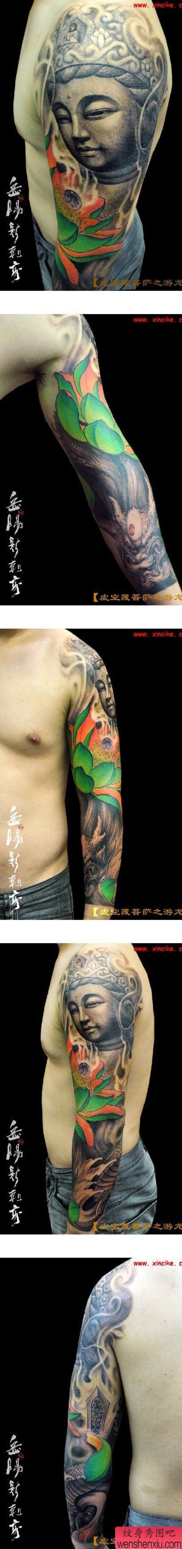 一张花臂虚空藏菩萨游龙纹身图案
