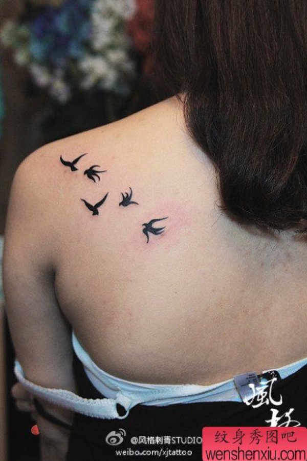 女生肩背小巧时尚的图腾小燕子纹身图案