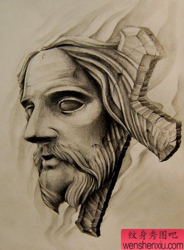 时尚时尚的的一张耶稣肖像与十字架纹身图案