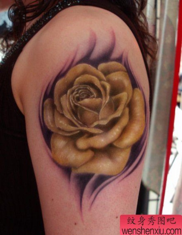 女生手臂漂亮时尚的一张黄玫瑰纹身图案