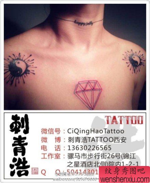 女生肩膀处经典的图腾八卦纹身图案