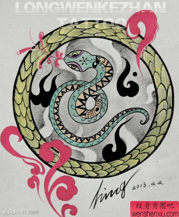 一张经典时尚的小蛇纹身手稿