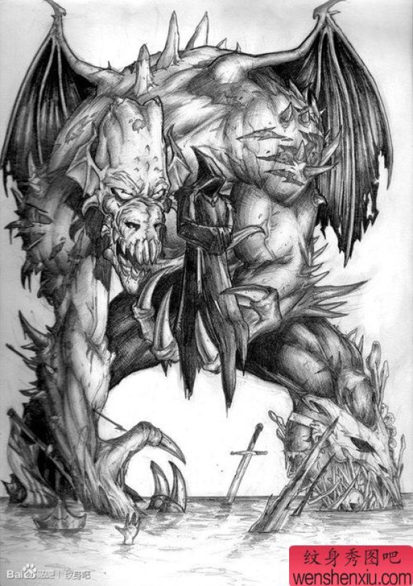龙纹身手稿_一组老传统黑灰龙手稿纹身图案