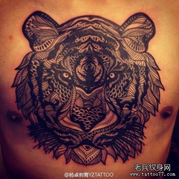 男士前胸超帅的一张图腾虎头纹身图案