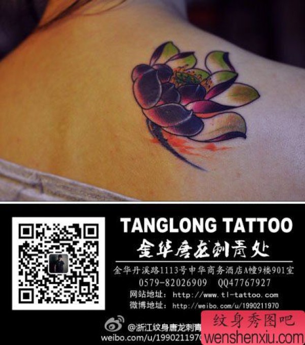 女生肩背唯美的新传统莲花纹身图案