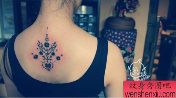 女生后背唯美时尚的藤蔓图腾纹身图案