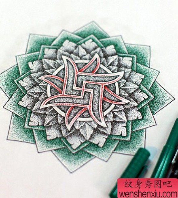 曼陀罗点刺梵花_100张曼陀罗点刺梵花纹身手稿图案