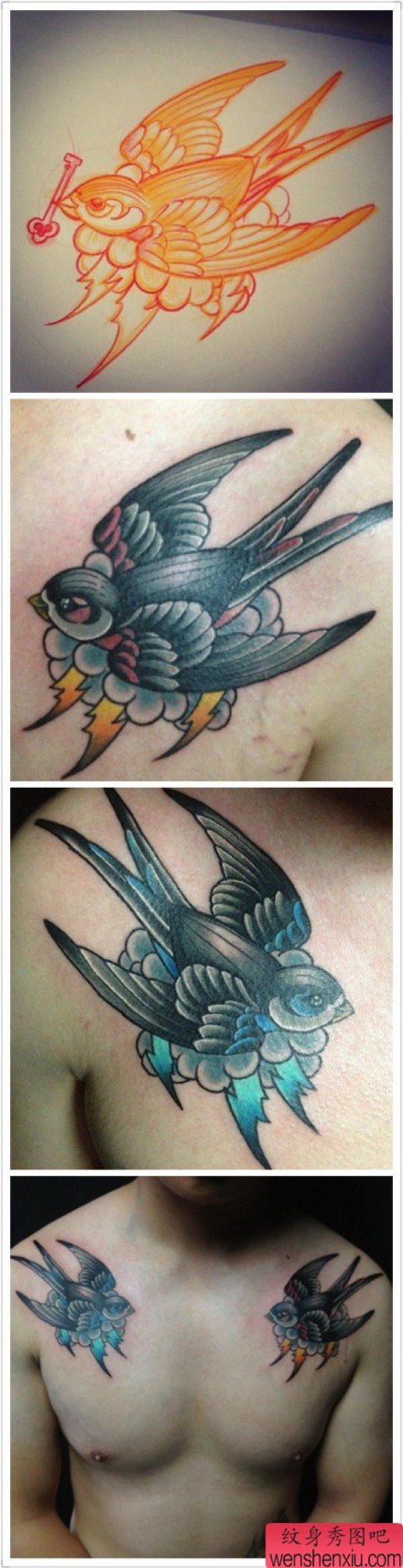男士前胸时尚时尚的小燕子纹身图案