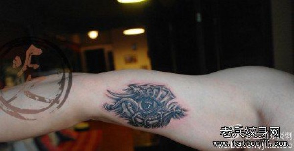 男士手臂内侧经典的一张机械眼睛纹身图案
