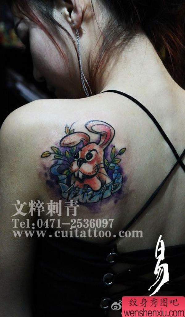 女生肩背时尚时尚的一张小兔子纹身图案