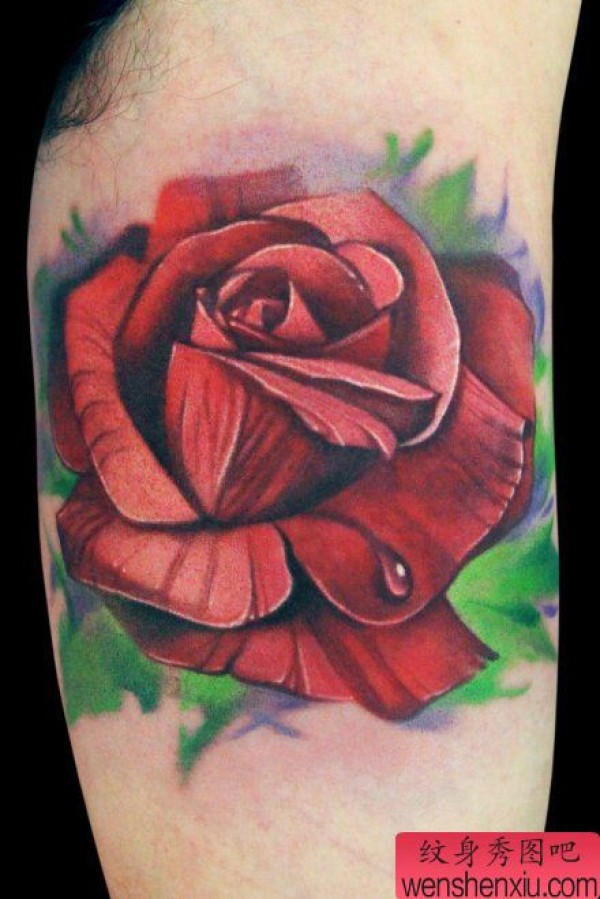 手臂内侧时尚写实的彩色玫瑰花纹身图案