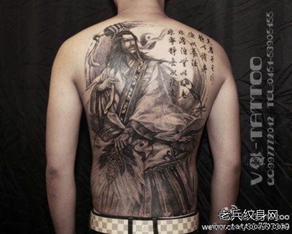 经典超酷的一张满背诸葛亮纹身图案