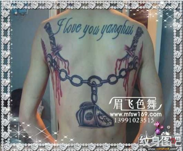 咸阳眉飞色舞背部强悍铁链棺材图