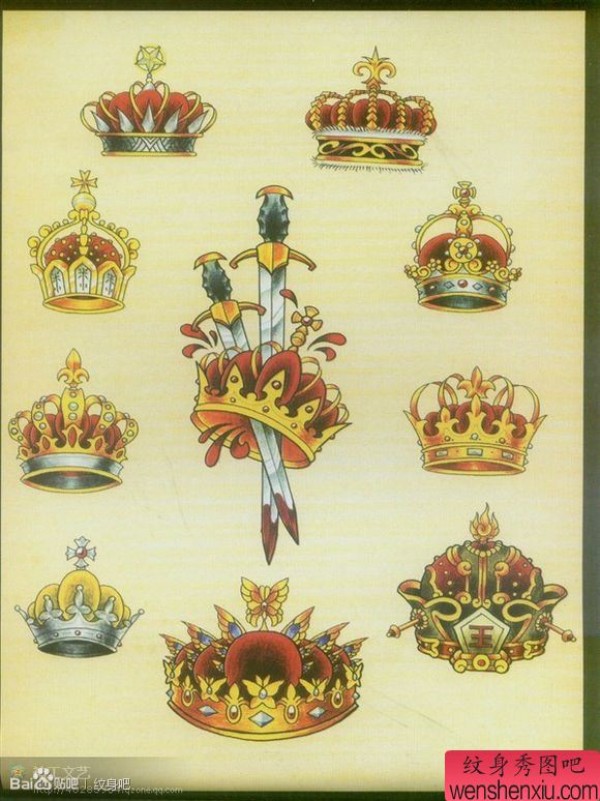 一套漂亮时尚的皇冠纹身手稿