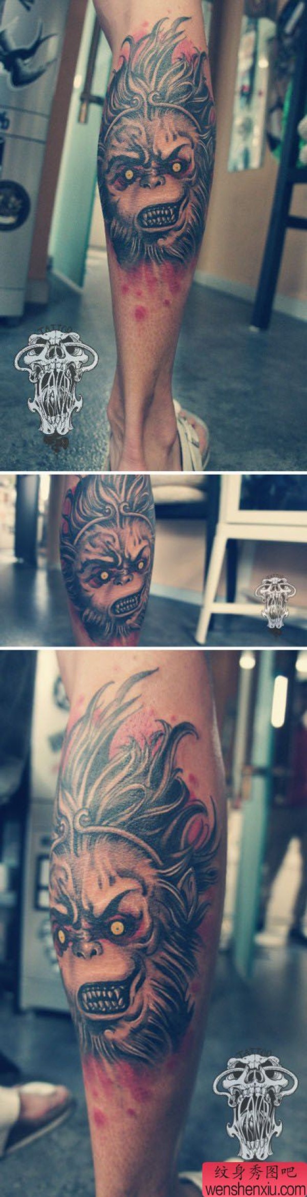 腿部超酷眼神凶狠的孙悟空纹身图案