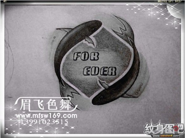 双鱼座纹身手稿_45张十二星座之双鱼手稿纹身图案