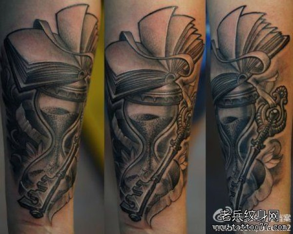 手臂时尚经典的欧美黑白沙漏纹身图案