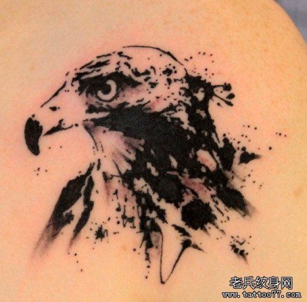 一张经典时尚的水墨老鹰纹身图案