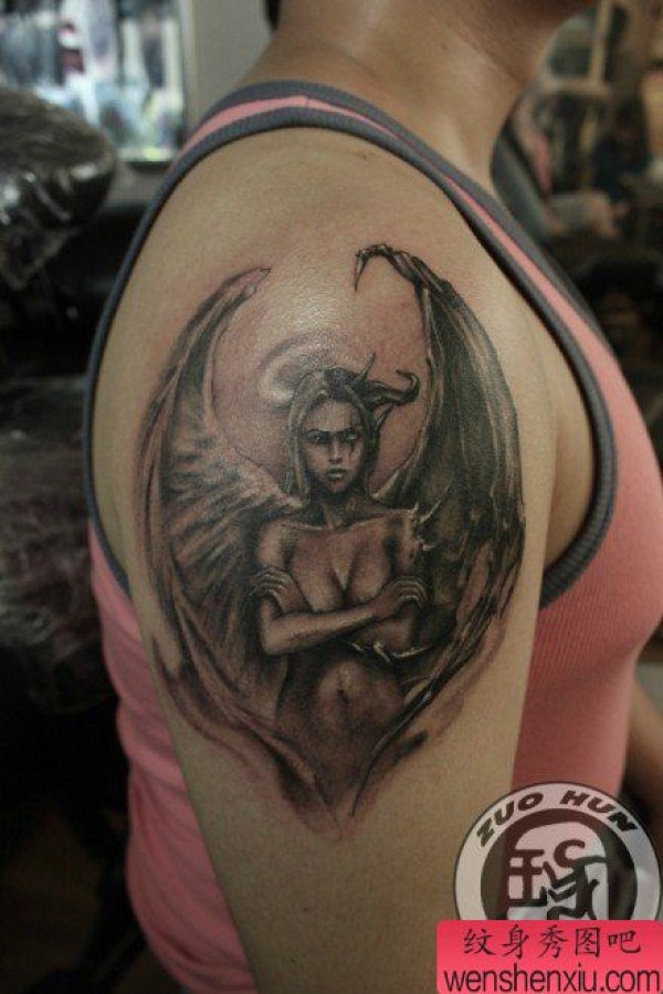 男生手臂超酷漂亮的恶魔美女纹身图案