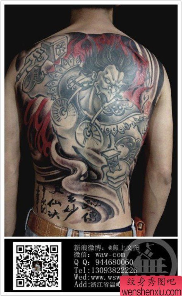 男士后背超酷的满背雷震子纹身图案
