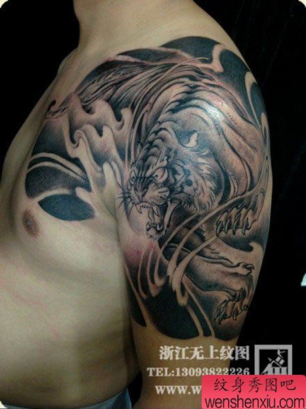男士喜欢的霸气经典的半胛老虎纹身图案