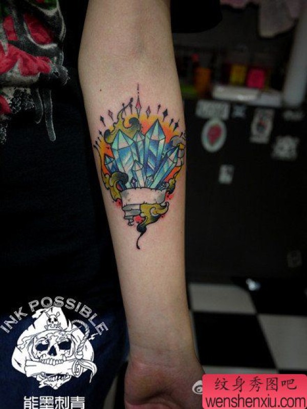 女生手臂时尚精美的宝石纹身图案