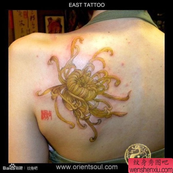 女生后背唯美漂亮的菊花纹身图案