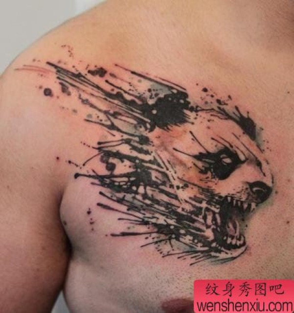 男士前胸帅气凶悍的水墨熊猫纹身图案