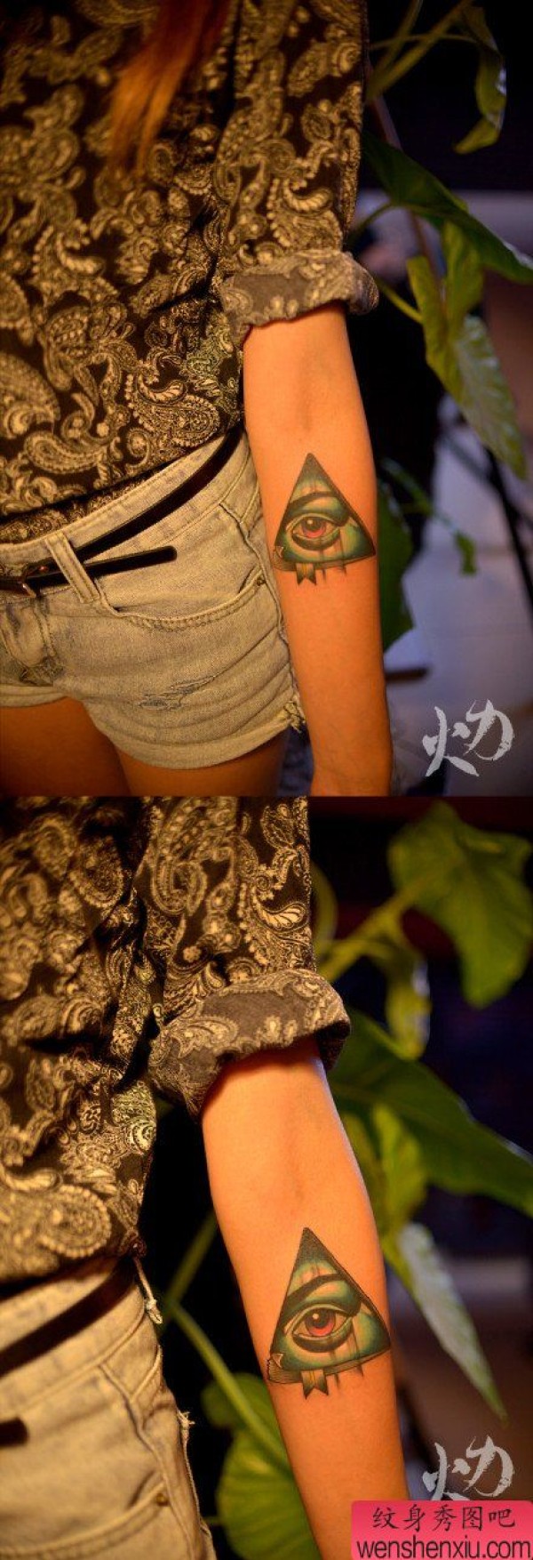 女生手臂漂亮时尚的眼睛纹身图案